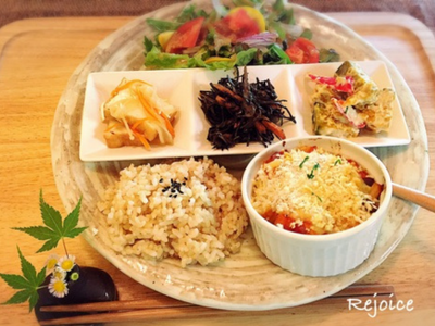 集中して織っていたのでお腹がペコペコ。今日はリジョイスランチを予約していたので菜食ランチを頂きます!